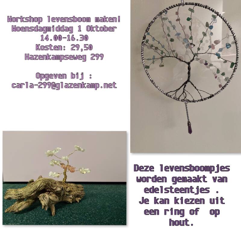 workshop levensboom maken in ring met vooraf een klank ontspanning.