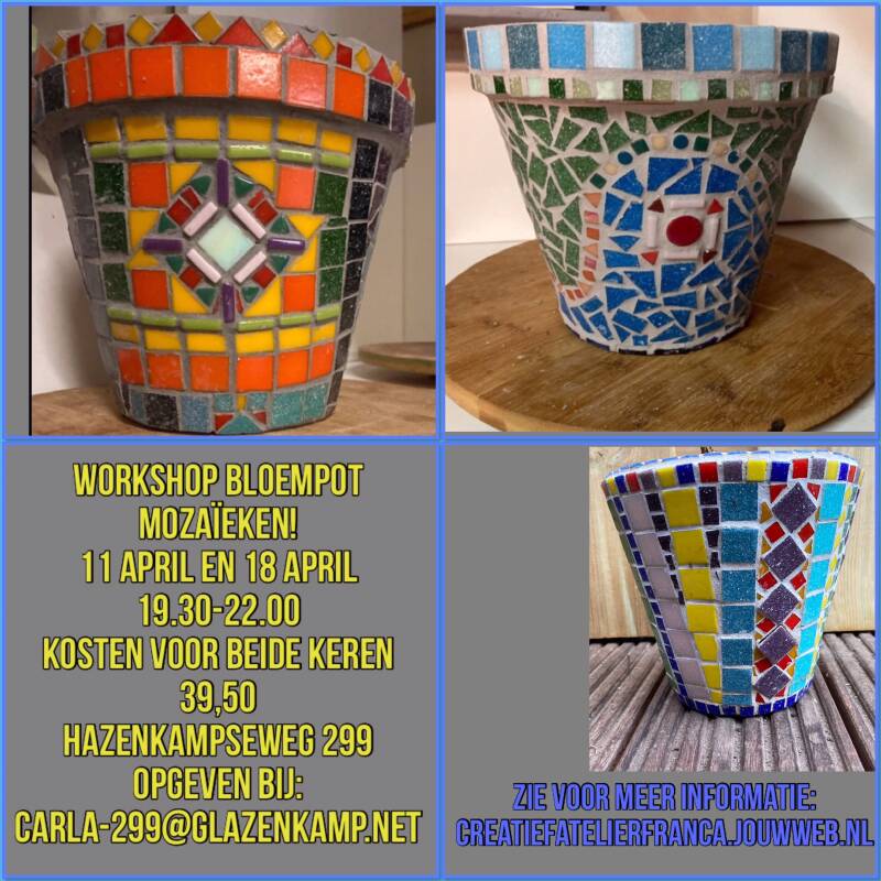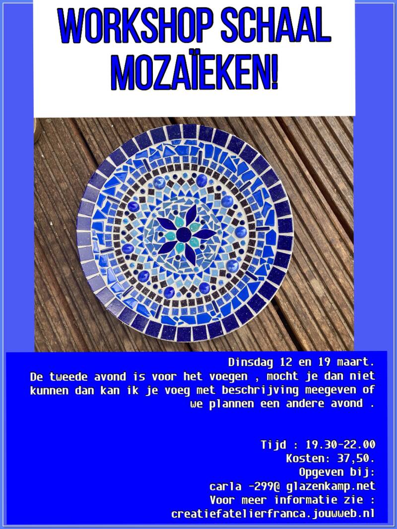 Dinsdag 12 en 19 Mrt geef ik een workshop schaal mozaïeken.