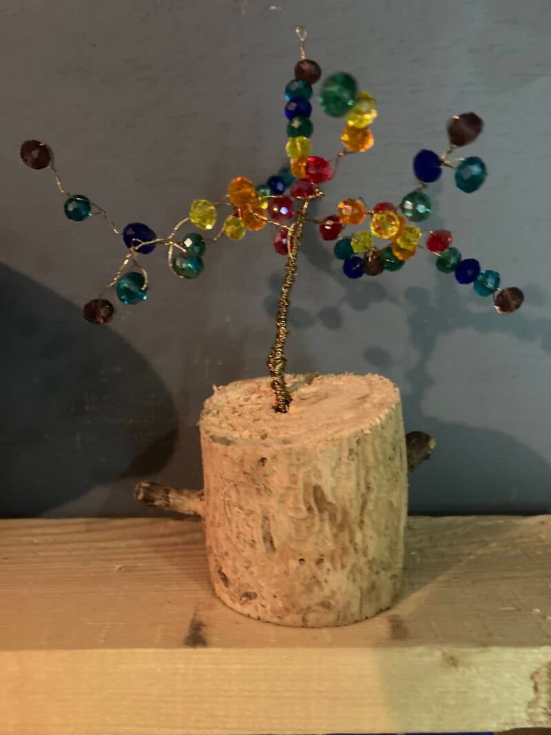 Alles klaargezet voor de workshop levensboom van edelsteentjes maken.